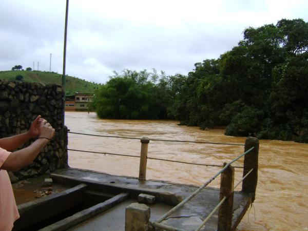 Na ponte da Casa de Saúde já é possível trafegar, embora ainda tenha água em excesso nos seus arredores. Do Dornelas em diante é impossível chegar.