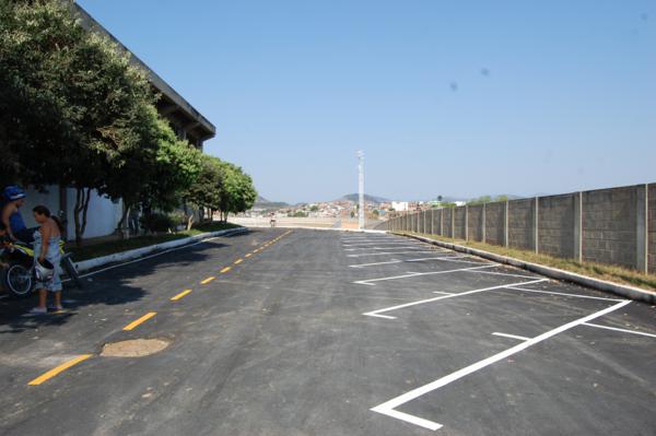 Área asfaltada em volta do ginásio