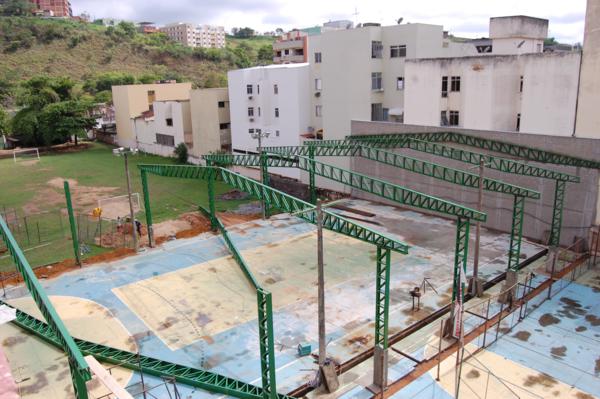 O árduo trabalho de cobertura da quadra da Escola São Paulo continua a todo vapor, porém é um trabalho muito minucioso, que requer vários cuidados e ao mesmo tempo requer tempo para que nada saia errado.