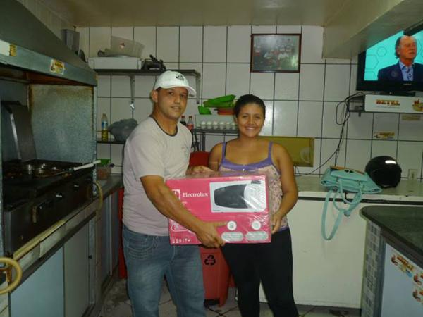 A Betel Lanches, através do proprietário Giovani Dunga, entregou um microondas para a cliente Thaís Oliveira, contemplada no sorteio realizado no último dia 17. A Betel Lanches agradece a todos seus clientes que participaram da promoção e avisa que a partir do dia 1º de agosto ficará isento a taxa de entrega. Disk entregas 3728-1362 ou 8854-1335.