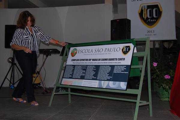 A contemplada da noite foi a professora Beatriz Barguine, que pulou de alegria e extrapolou na comemoração ao ganhar esse grande prêmio. Na oportunidade, foi descerrada a placa inaugural do Complexo Esportivo que recebe o nome da saudosa Dra Maria do Carmo Barreto Couto, homenagem mais que merecida a essa grande personalidade, que deixou seu nome cravado na história da Escola São Paulo.