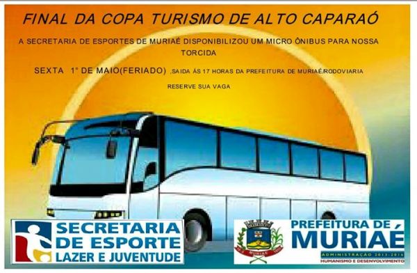 A secretária de Esportes de Muriaé colocou a disposição dos torcedores, um para que os mesmos possam acompanhar Muriaé na final da Copa Turismo em Alto Caparaó.