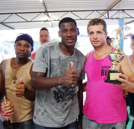 Flavinho entregando troféu para Flexa