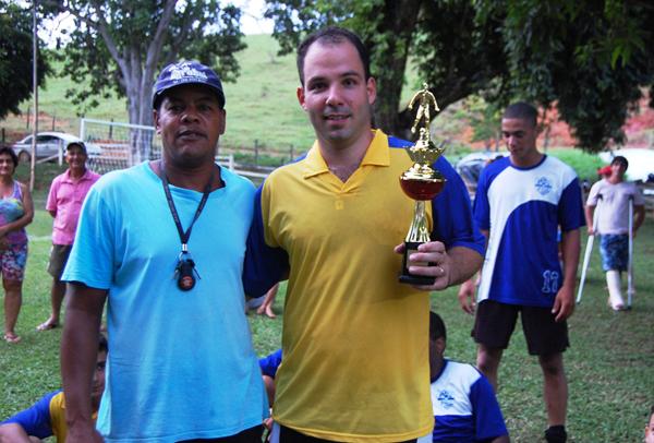Elson recebendo troféu de campeão