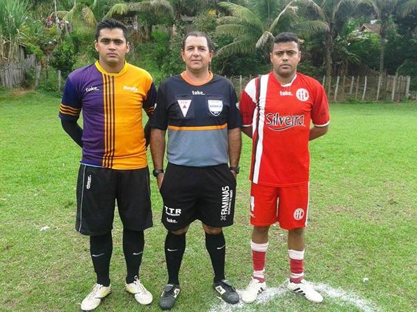 Árbitro Silvio com os capitães das equipes