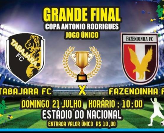 Assim como foi na última edição da Copa Antonio Rodrigues Santana, Tabajara e Fazendinha decidem neste domingo no Soares de Azevedo o título da competição 2019. Ambas equipes vem em uma crescente e a partida tem tudo para ser um jogão de bola. Os ingressos da partida custam 10 reais e a Rádio Catedral irá transmitir na íntegra a grande decisão.